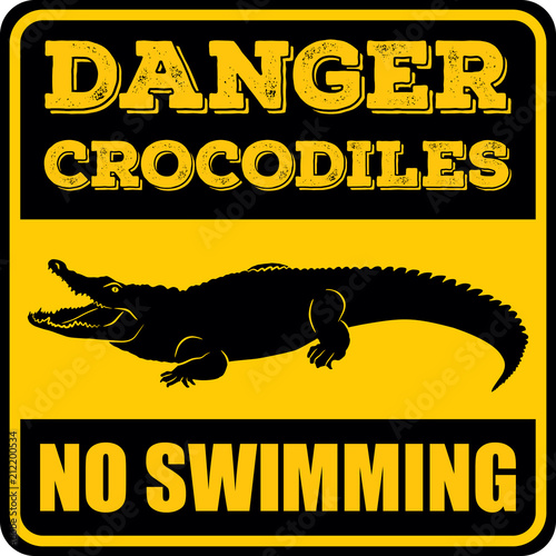 © zfmbek, Naklejka premium Niebezpieczeństwo krokodyli bez znaku pływania