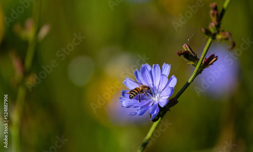 © KoLesfot, Fototapeta premium Niebieski kwiat i pszczoła