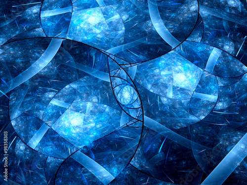 © sakkmesterke, Obraz premium Niebieski rozjarzony fraktal witrażu