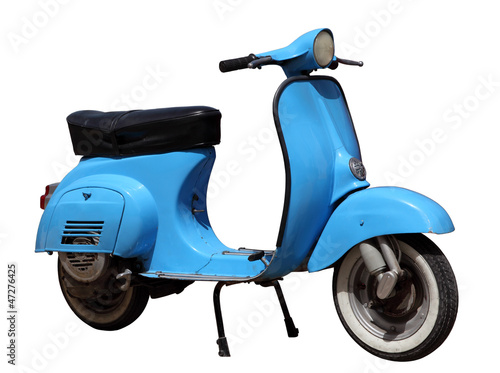 © philipus, Obraz premium Niebieski skuter vintage na białym tle nad białym tle