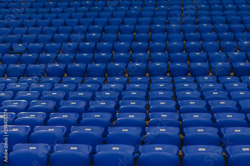 © alexbutko_com, Fototapeta premium Niebieskie numerowane miejsca siedzące na trybunach stadionu