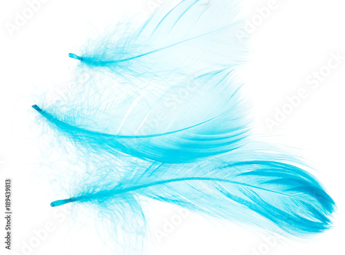 © studybos, Fototapeta premium niebieskie pióra na białym tle