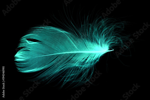 © schankz, Fototapeta premium Niebieskie pióro na czarnym tle