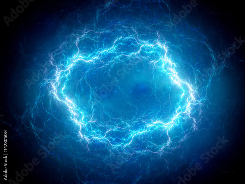 © sakkmesterke, Fototapeta premium Niebieskie świecące kuliste pioruny plazmowe o wysokiej energii w przestrzeni