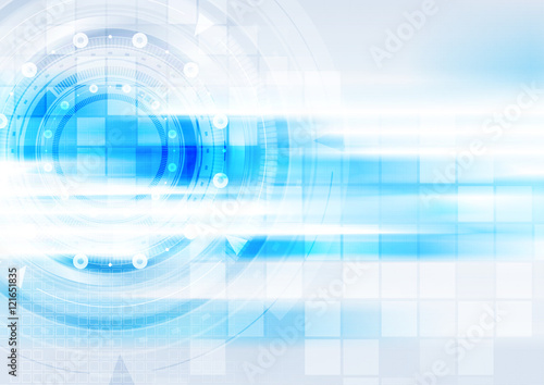 © saicle, Obraz premium Niebieskie tło hi-tech ze świecącymi paskami