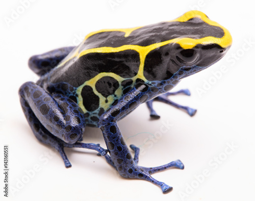 © kikkerdirk, Obraz premium Niebiesko-czarno-żółta żaba z trucizną strzałką, Dendrobates tinctorius Kaw morph. Piękne małe egzotyczne zwierzę z dżungli amazońskiej w Surinamie. Na białym tle na białym tle. .