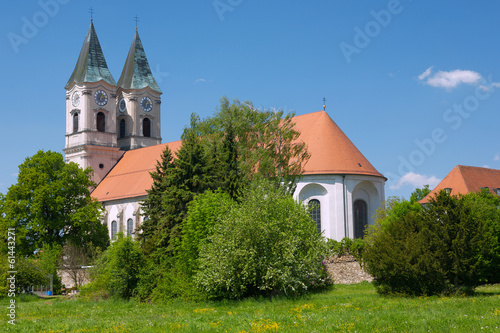 Naklejka premium Niederalteich, Kloster, Basilika, Blumenwiese, Klostermauern