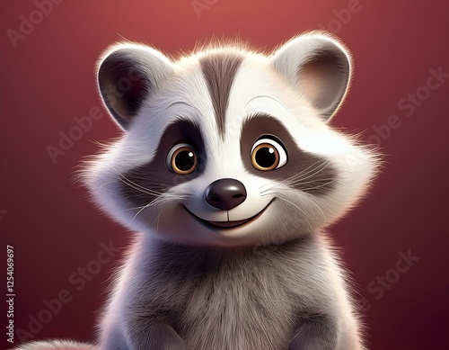 Fototapeta premium Niedlicher Waschbär, bordeaux Hintergrund
