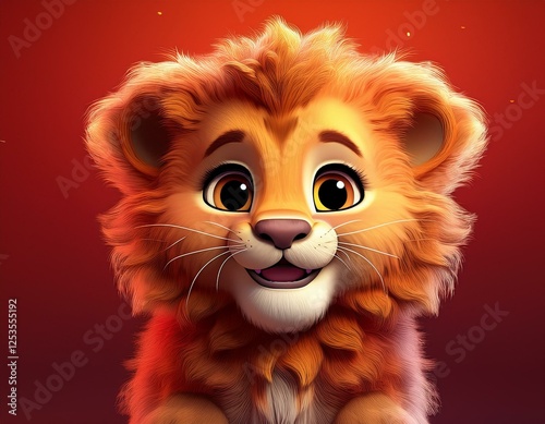 Obraz premium Niedliches Löwenbaby, roter Hintergrund