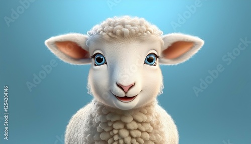 Naklejka premium Niedliches Lamm, blauer Hintergrund