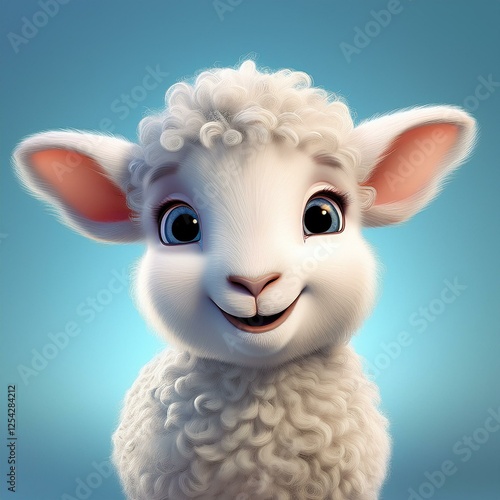 Naklejka premium Niedliches Lamm, blauer Hintergrund