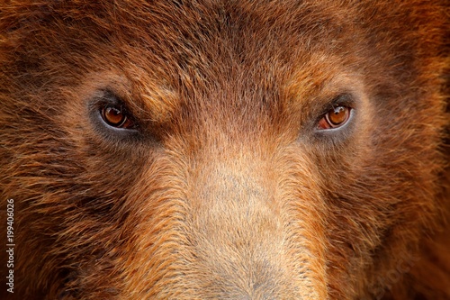 © ondrejprosicky, Fototapeta premium Niedźwiedź brunatny, szczegół portret oka szczegół. Brązowe futro, niebezpieczne zwierzę. Przyroda dzikiej przyrody. Naprawiono wygląd, zwierzęcy pysk z oczami. Duży ssak z Rosji. Sztuka spojrzenia na naturę. Niedźwiedź twarz. Agresywne zwierzę.