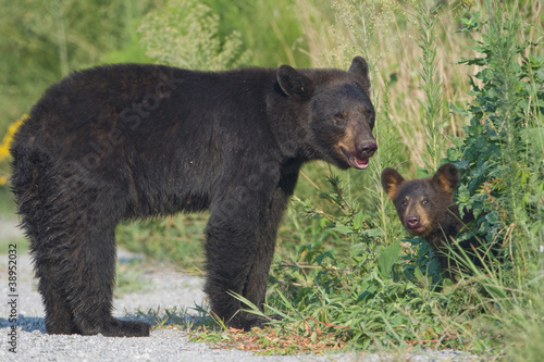 © halbrindley4, Fototapeta premium Niedźwiedź czarny matka z młodym. Alligator River NWR