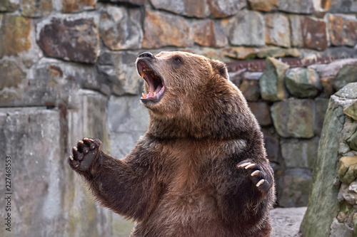 © Вячеслав, Obraz premium Niedźwiedź grizzly. szeroko otwarte usta.