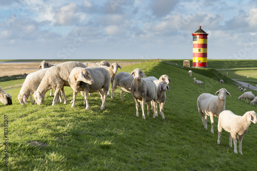 © Oskar, Obraz premium Niemcy, Dolna Saksonia, Krummhörn, latarnia morska Pilsum.
