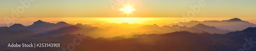 © Mountains Hunter, Fototapeta premium Niesamowity wschód słońca na górze Synaj, piękny świt w Egipcie, piękny widok z góry