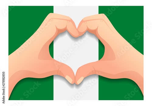 Fototapeta premium Nigeria flag and hand heart shape