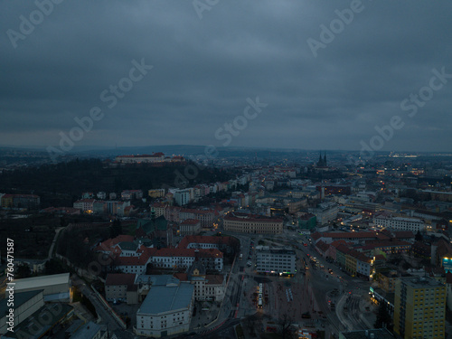 Naklejka premium Night aerial view of the city of Brno in the Czech Republic