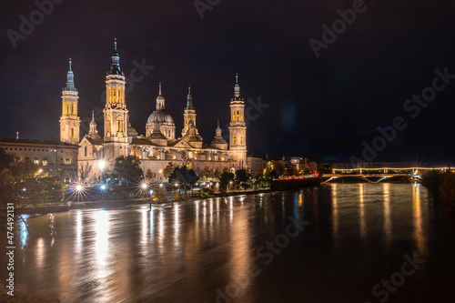 Fototapeta premium Night at the Basilica of Nuestra Señora del Pilar on the Ebro river in the...