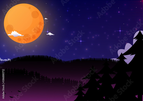 © Hiday Vector, Fototapeta premium night background with moon and dark color