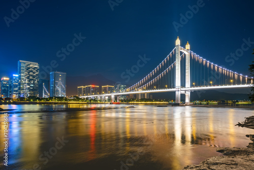 Fototapeta premium Night, Beautiful Urban Landscape, Fuzhou, Fujian, China