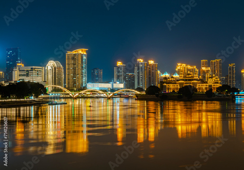 Fototapeta premium Night, Beautiful Urban Landscape, Fuzhou, Fujian, China