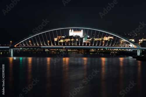 © Marek, Naklejka premium Night Bratislava's dominants, castle and bridge.