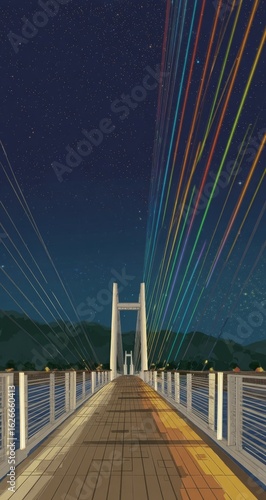 © Hutan, Fototapeta premium Night bridge with vibrant colorful streaks