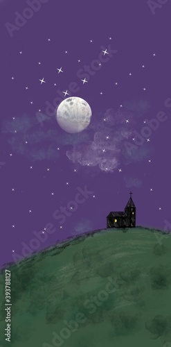 Obraz premium night church on a hill in the countryside
