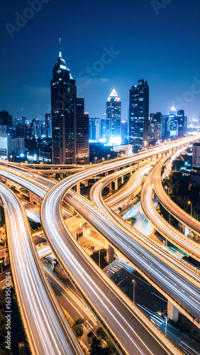 © nani, Obraz premium Night City Highway Interchange. (1)