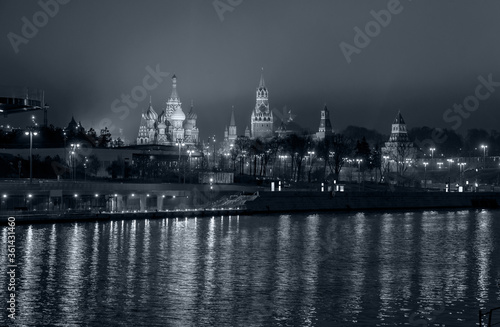 Naklejka premium Night city in the fog, Moscow, Russia.