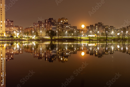 © Александр Бутылов, Obraz premium Night city Kiev is reflected in the water.