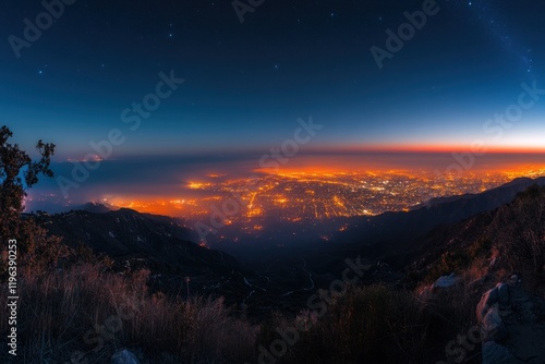 © NAIMAH, Naklejka premium Night City Lights from Mountaintop: A Breathtaking Panorama