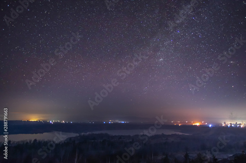 © onyx124, Fototapeta premium Night city on the background of the starry sky