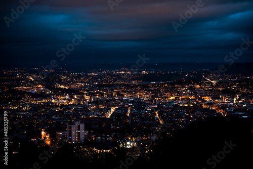 © Jonas M. Schmidt, Obraz premium Night city panorama of Stuttgart, Germnay, skyline