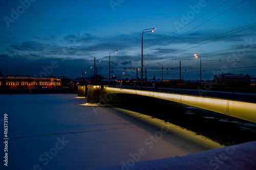 Obraz premium Night city, river, bridge