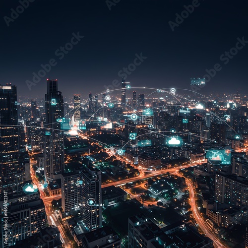 © Rodriguez, Fototapeta premium Night City's Digital Embrace: A Connected Metropolis