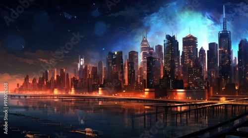 © alindiyani, Obraz premium Night City Skyline