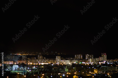 Obraz premium Night city skyline timelapse. Top aerial panoramic view of modern city from...