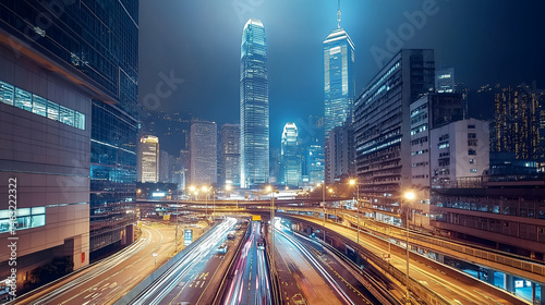 Fototapeta premium Night City Skyline with Bright Lights and Traffic Trails