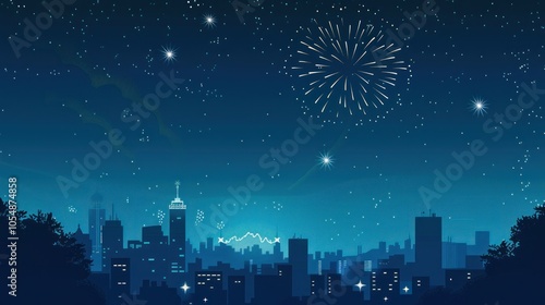 © Berkah, Fototapeta premium Night City Skyline with Fireworks