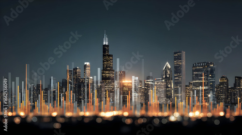 Fototapeta premium Night City Skyline with Glowing Data Lines