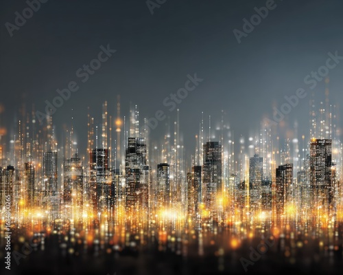 © Asri, Fototapeta premium Night City Skyline With Golden Lights