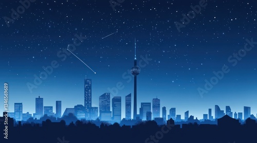 © Falikhurrosid, Fototapeta premium Night city skyline with stars, urban landscape