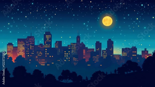 Fototapeta premium Night city. Urban landscape houses night environment vector background