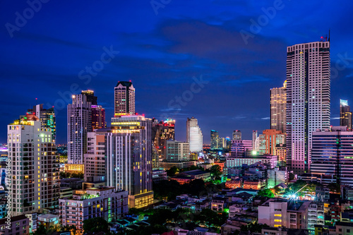 © bank215, Obraz premium night cityscape building on twilight skyline