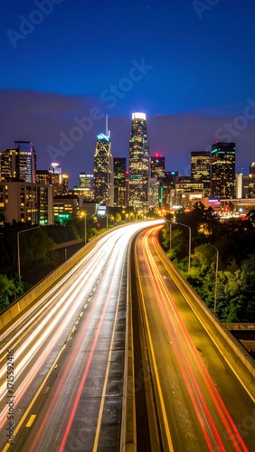 © Studios, Fototapeta premium Night cityscape highway lights blur