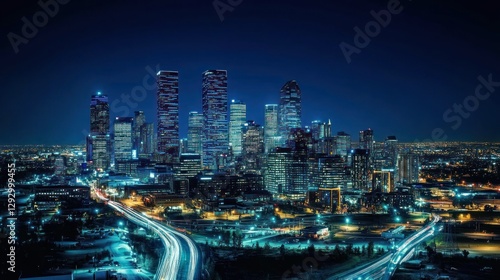 © lestari, Fototapeta premium Night cityscape, highway, urban sprawl, Texas, USA; website banner