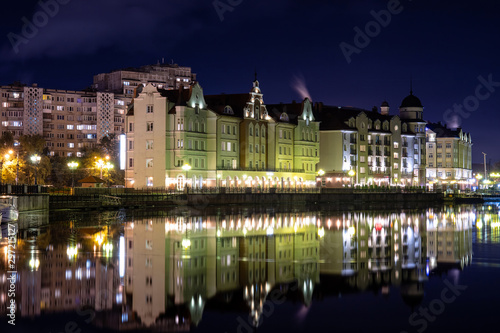 © Sergey, Fototapeta premium night cityscape near the river with bright lights
