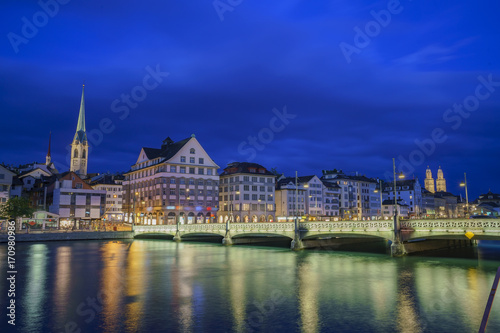 © Kit Leong, Obraz premium Night cityscape of Zurich